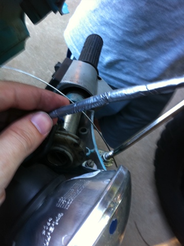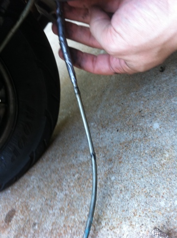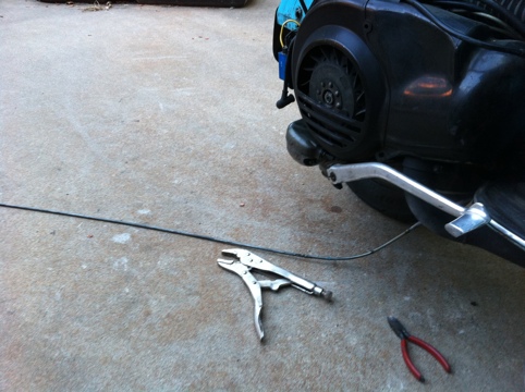 So hell hath no fury like a vespa clutch cable kinked? HA – well, everyone that has googled how to replace a clutch cable can tell ya that replacing a clutch cable is SOOO simple. News flash…NOT ALWAYS, but with a little thought and patience it really can work. So I busted a cable about 6 – 8 inches in from the top clutch lever. No biggie right? Just pull the lever, slide out the remaining cable and slide a new ‘inner’ cable in! Wrong..some cable freyed badly as it had been breaking for years and lodged itself in the outer cable.